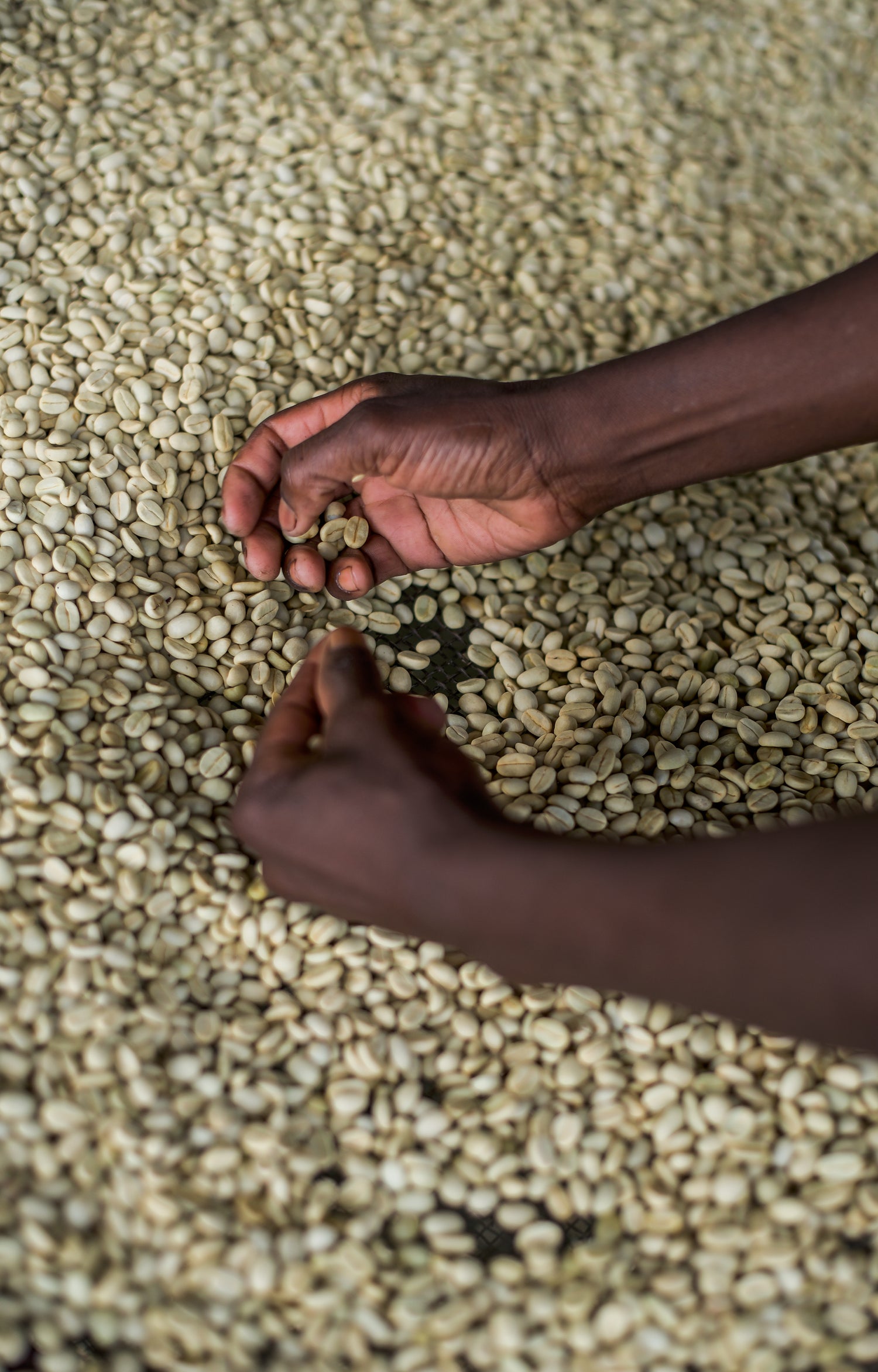 The ripe cherries are wet washed at Nkora, the oldest and largest washing station in Rwanda. They are then carefully sorted by hand and sun-dried before being sent to Kigali for dry milling, another layer of hand sorting, and finally roasting.